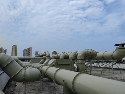科學試驗室煙氣 → 吸附性炭進行管道過濾器 → 引高壓風機 → 進行排放